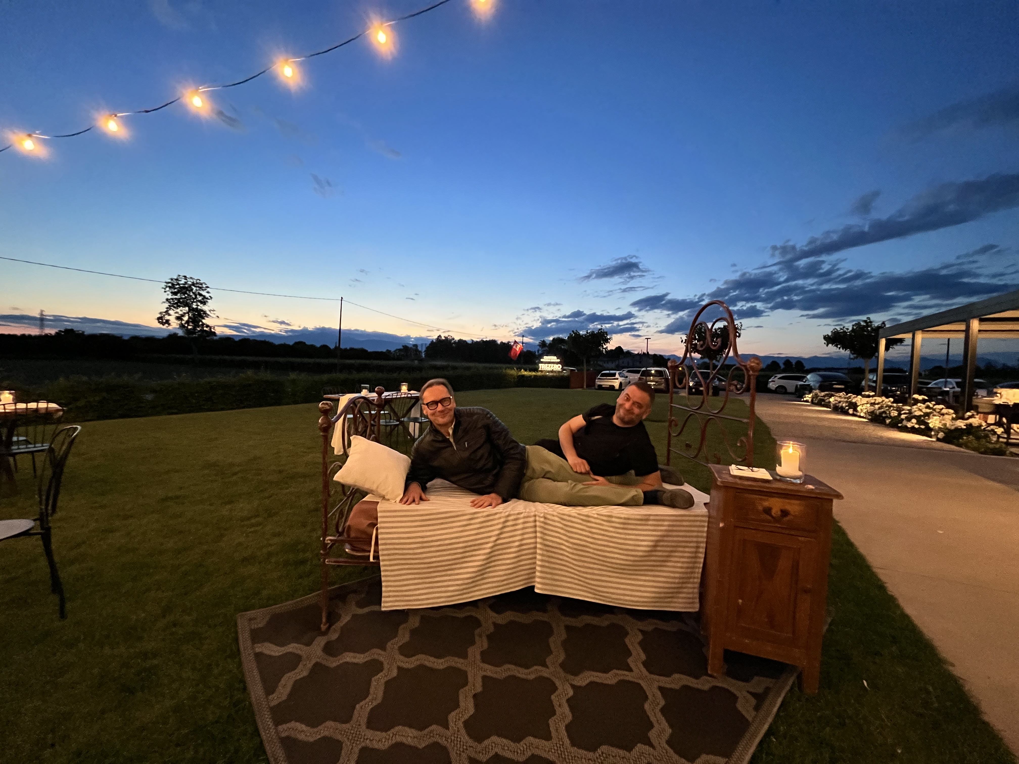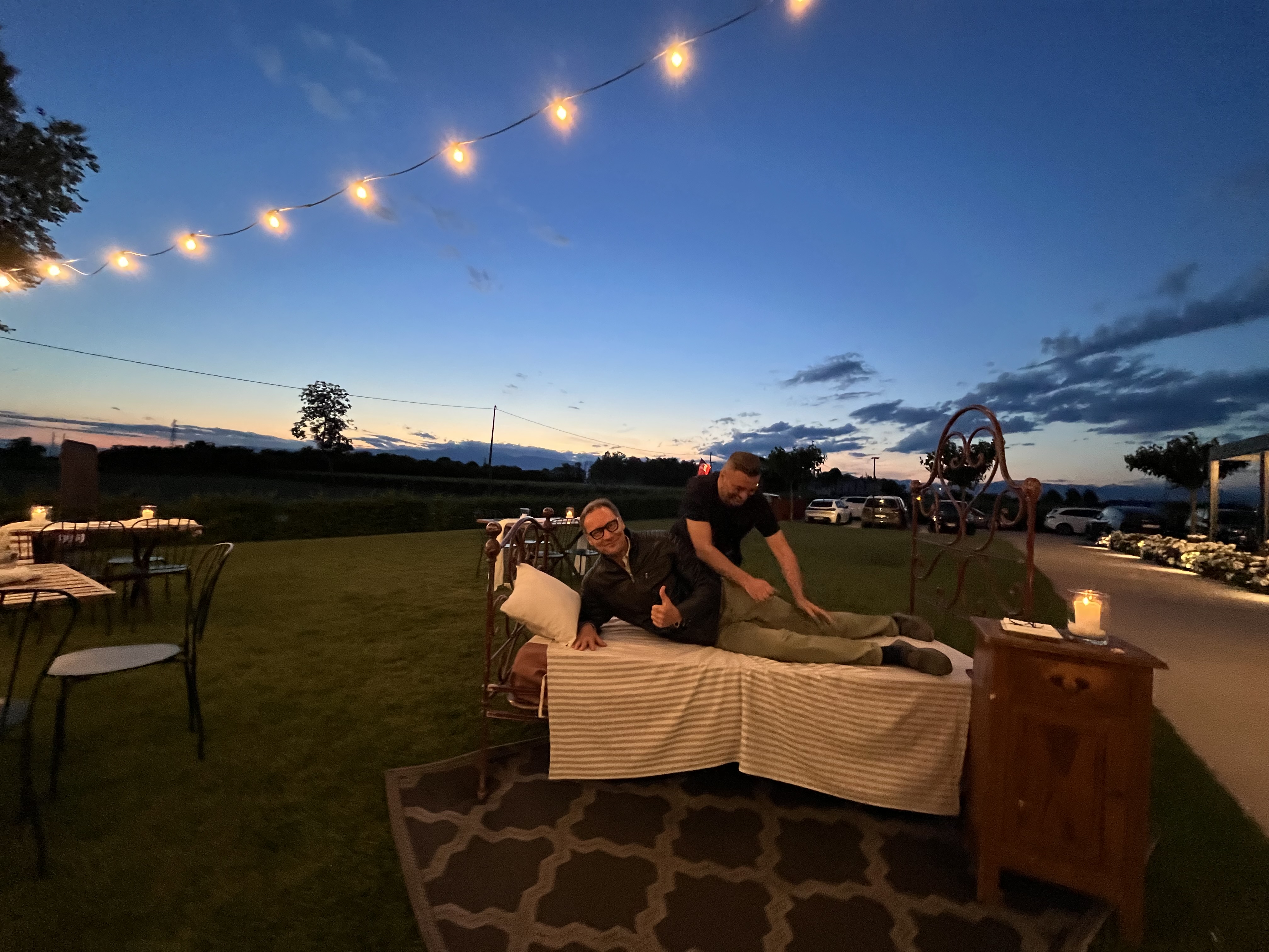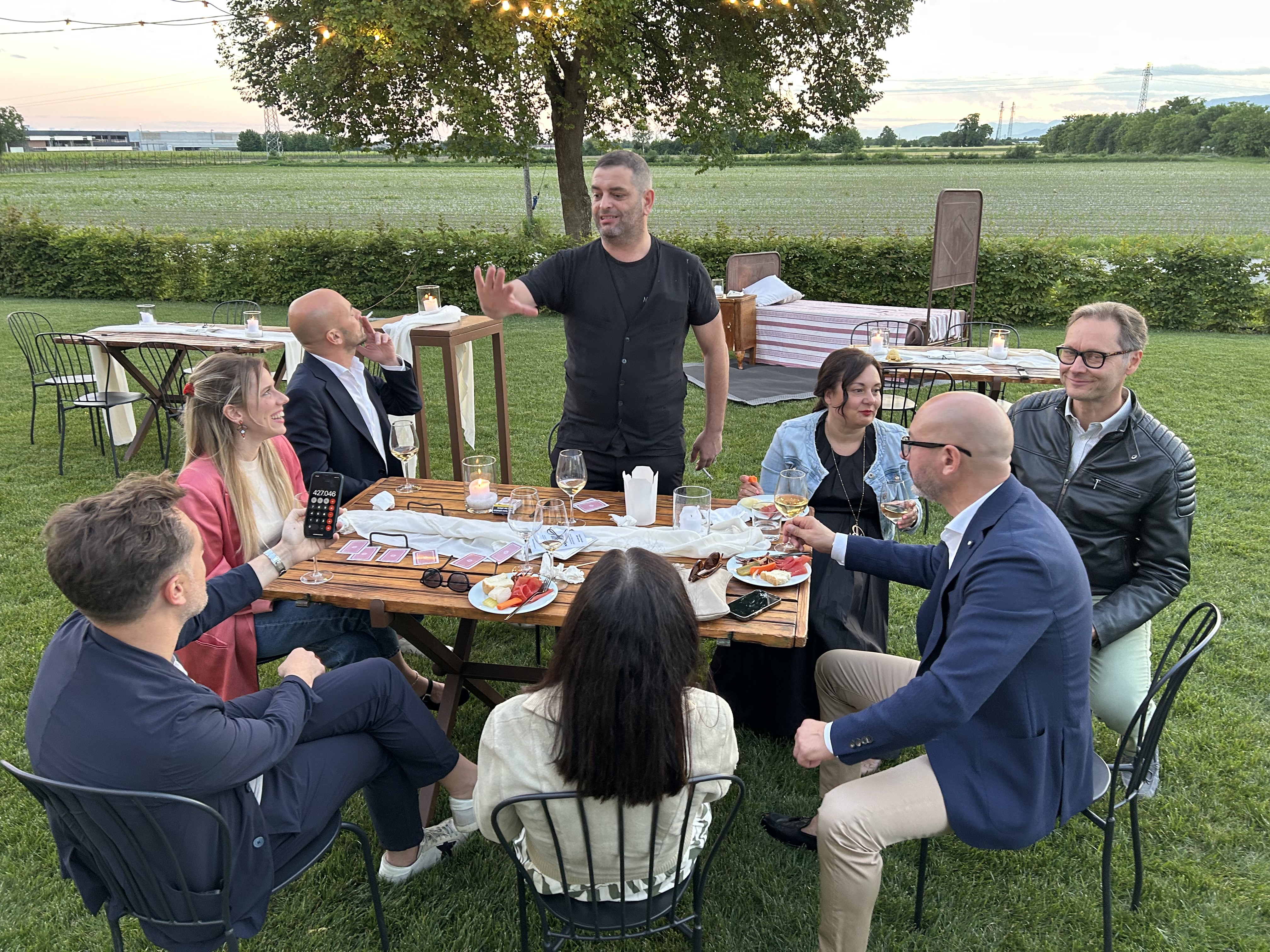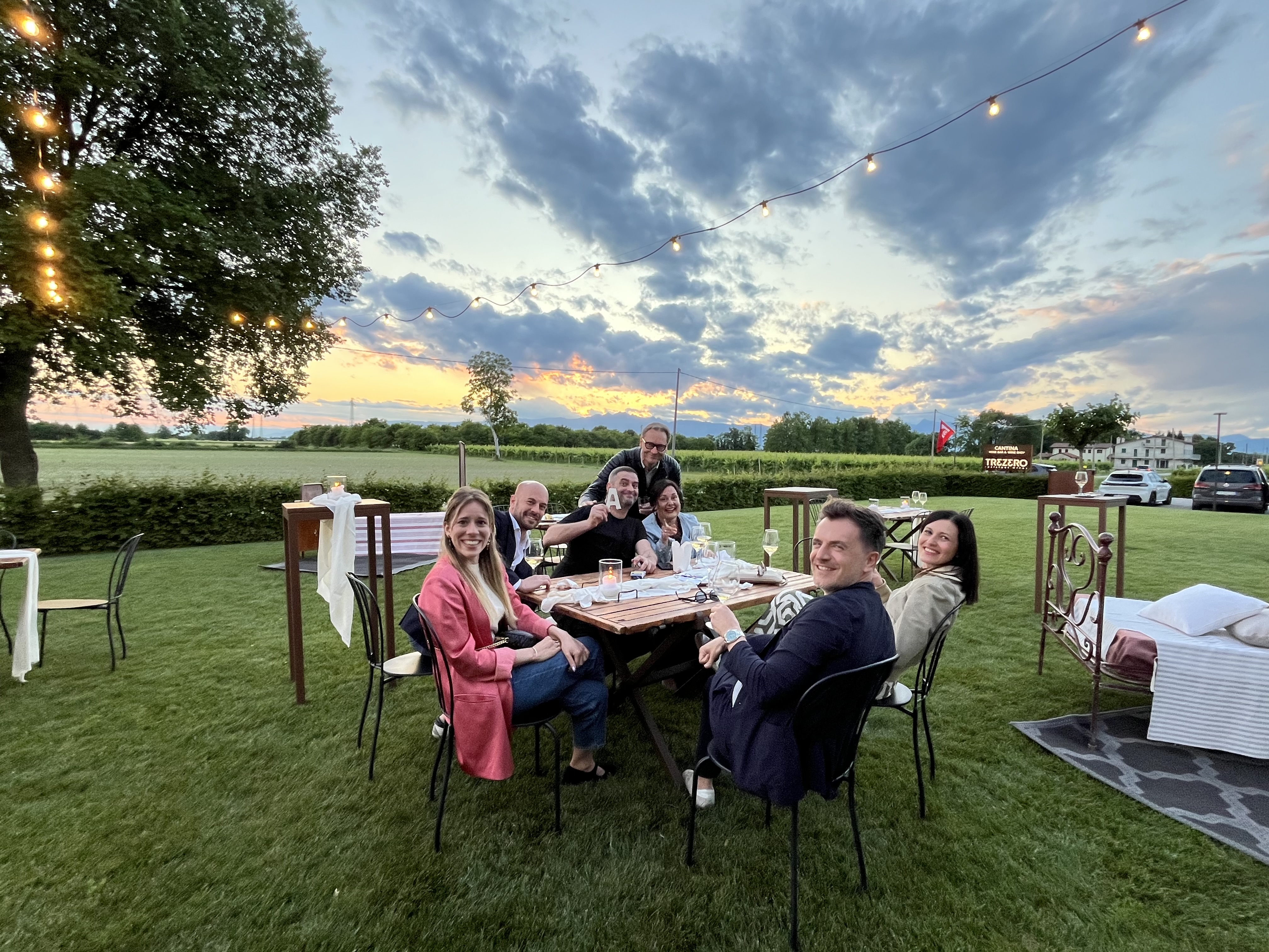 La festa si svolgerà presso la cantina TreZero che è stata affittata solo per noi e per tutta la serata. L'evento si terrà principalmente all'esterno ma anche con l'utilizzo del piano inferiore e superiore. Vi chiedo la cortesia di segnalarmi eventuali intolleranze (vedi punto successivo).